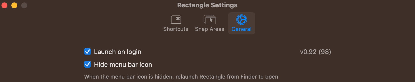 Ultimately I can obviously live with the app icon being visible, I just thought I'd mention it incase it was simple to add an option in preferences similar to an app like Rectangle for example (which is for rearranging app windows with keyboard shortcuts). In the screenshot I share below from Rectangle the option is for toggling visibility in the menu bar, but the principal is the same.