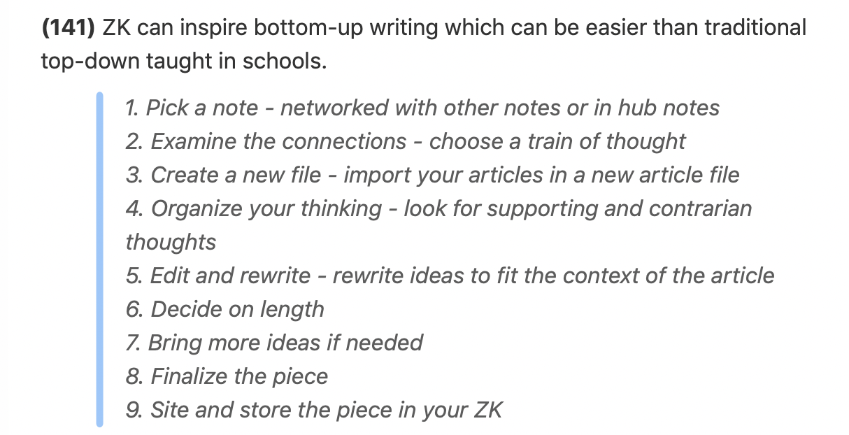 In one of the chapters, Doto includes a nice list of the key processes of ZK, and I am trying to figure out how to capture it in a reference note.